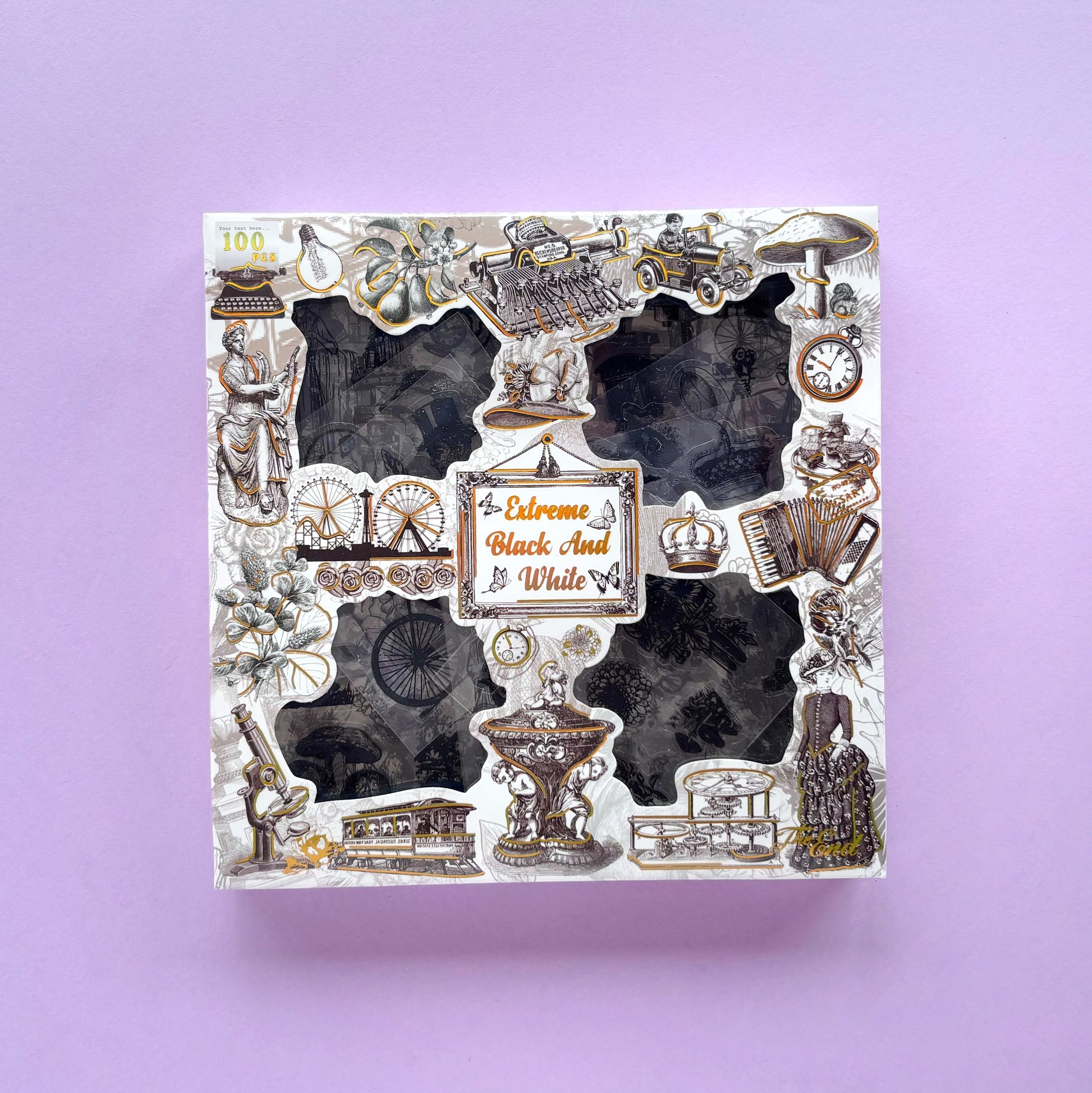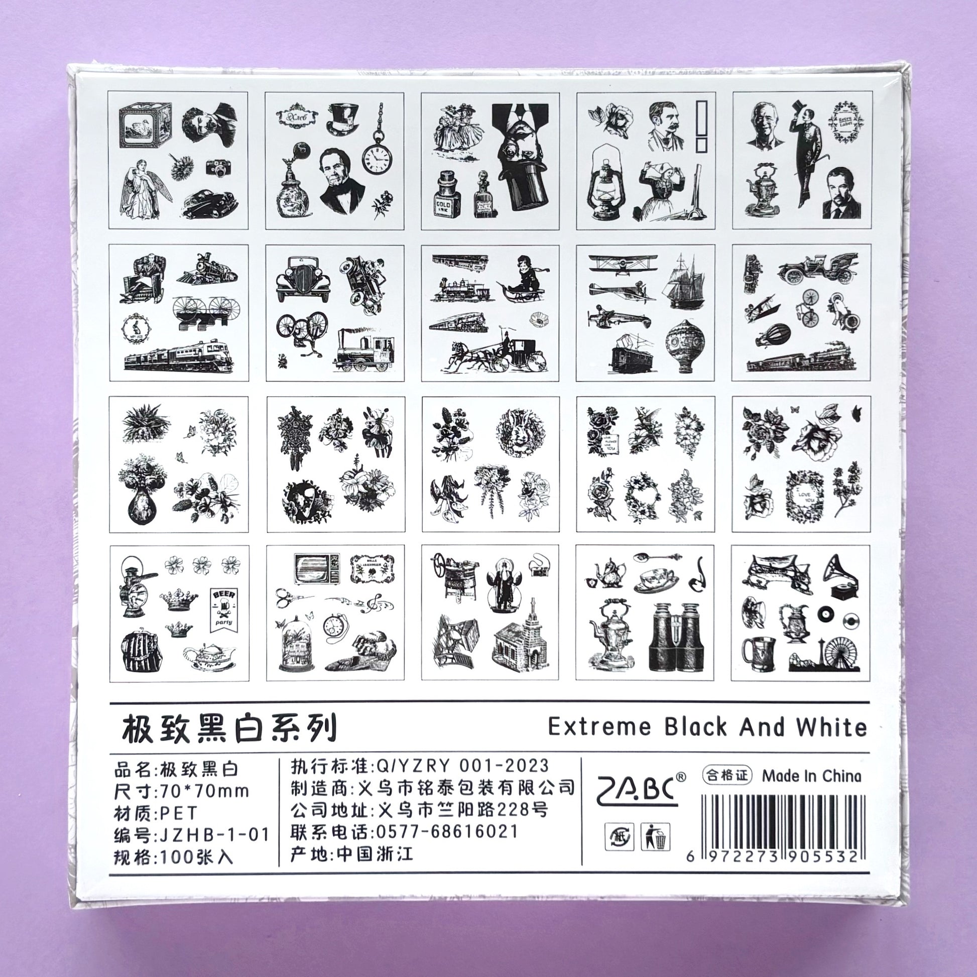 Caja de Stickers Vintage x 100 piezas - Extreme Black & White