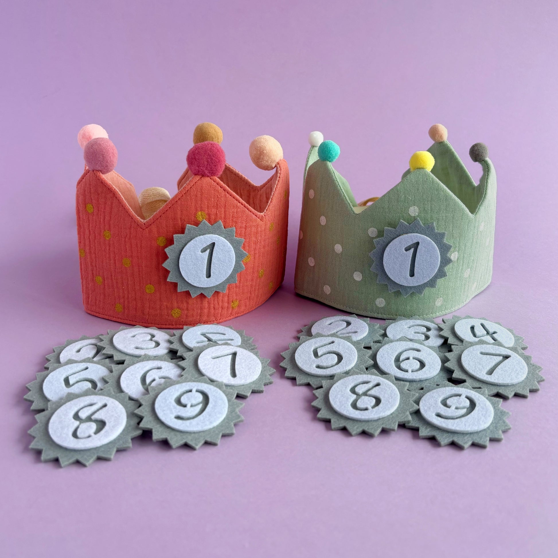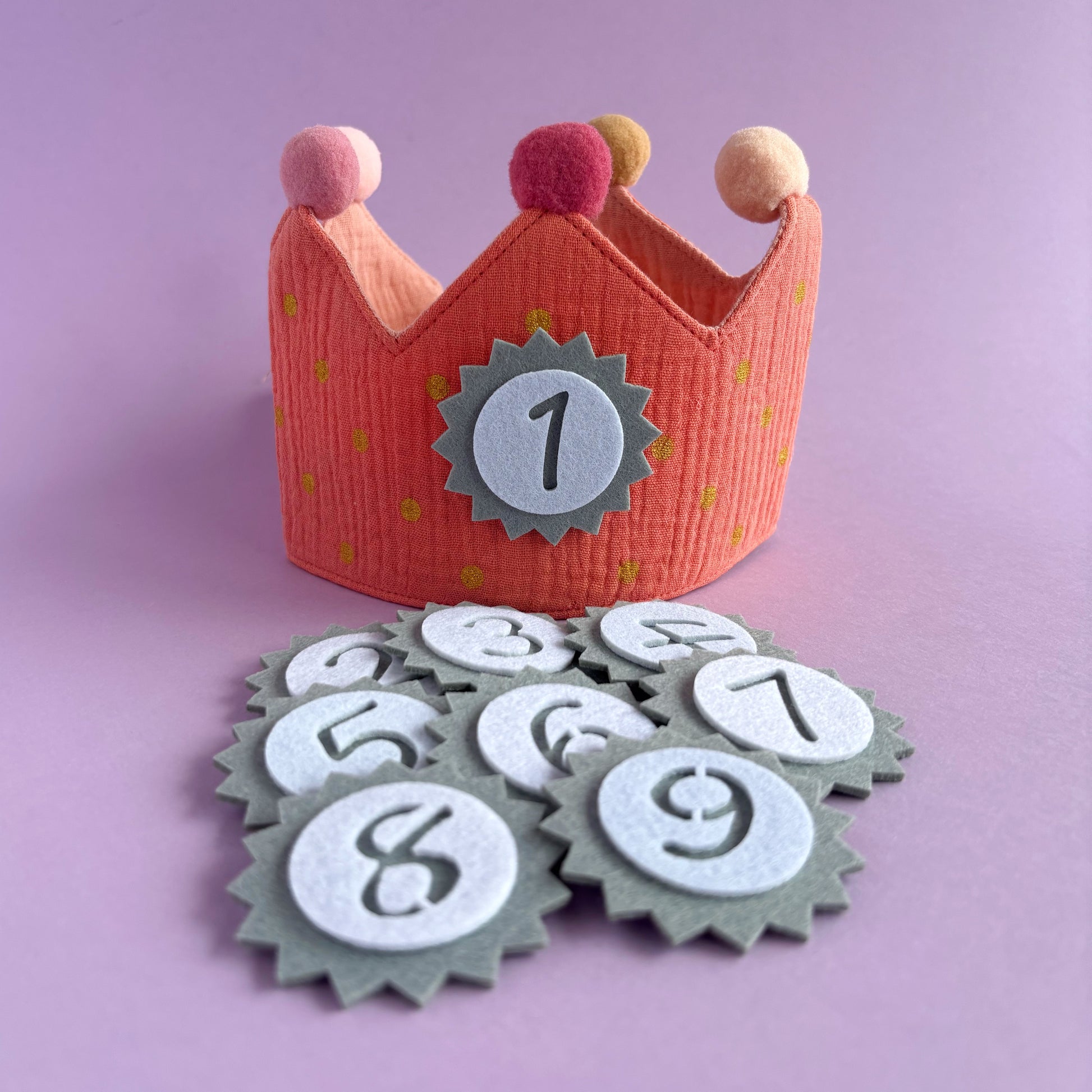 Corona de cumpleaños de tela con números intercambiables