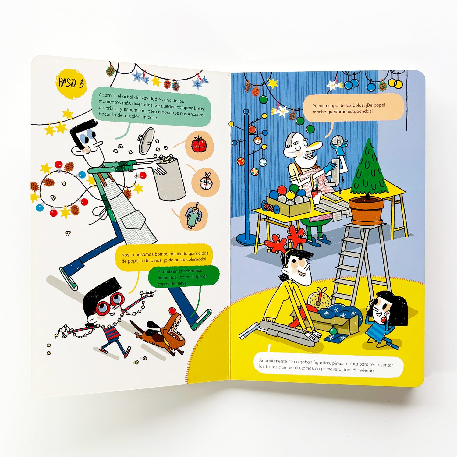 En este libro cartoné de 12 páginas, Mercè Canals nos enseña, con ilustraciones coloridas y estilo tipo cómic, cómo elegir, adornar y cuidar un árbol de Navidad respetando la naturaleza. Al final, encontrarás piezas troqueladas para que los niños puedan montar su propio abeto como manualidad.