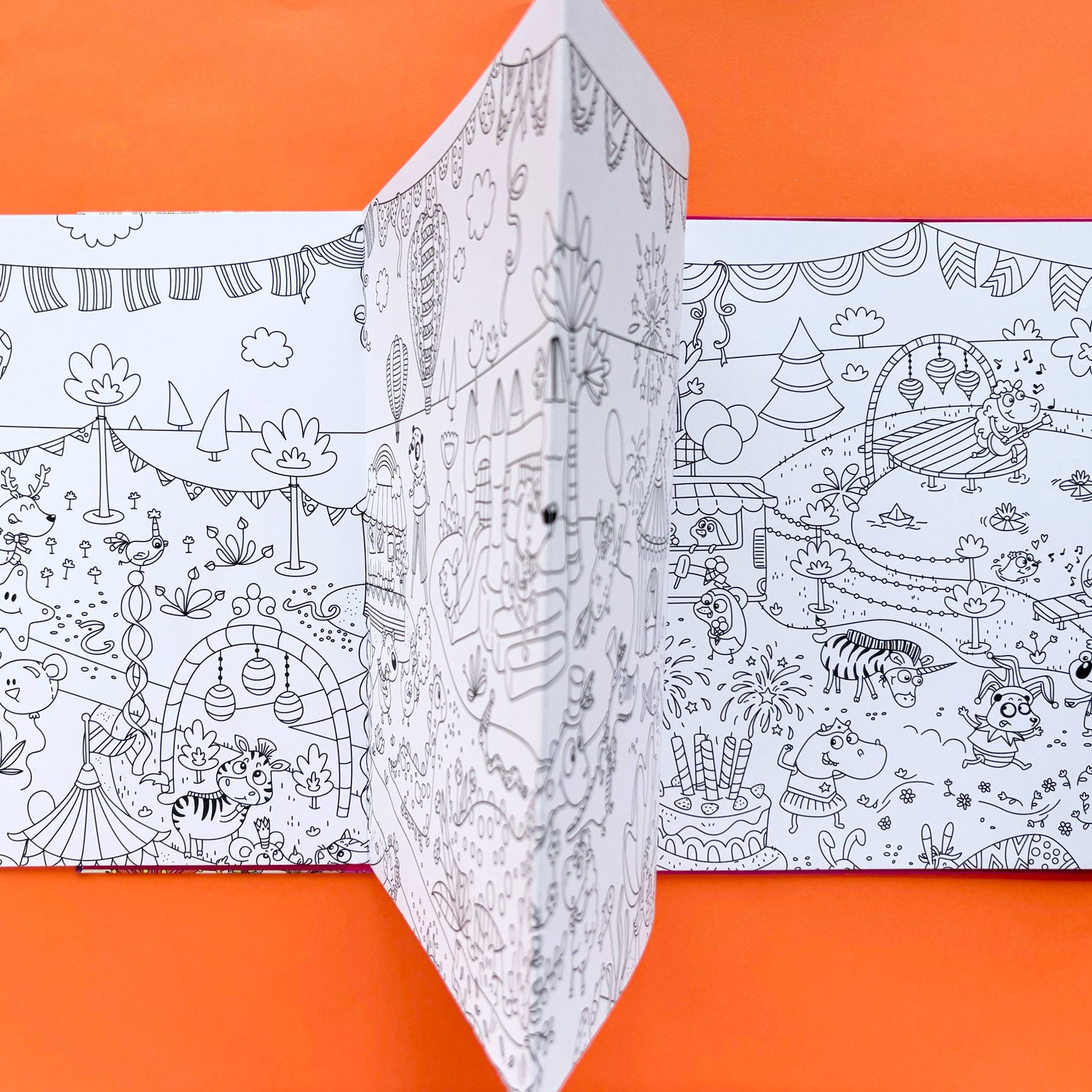 Despliégalo en el suelo o en la mesa y pinta junto a tu familia o amigos, disfrutando de un momento de unión y diversión. Entre animales disfrazados, decoraciones festivas y mil detalles por descubrir, cada página invita a crear recuerdos, reír y celebrar juntos el poder de colorear en compañía.
