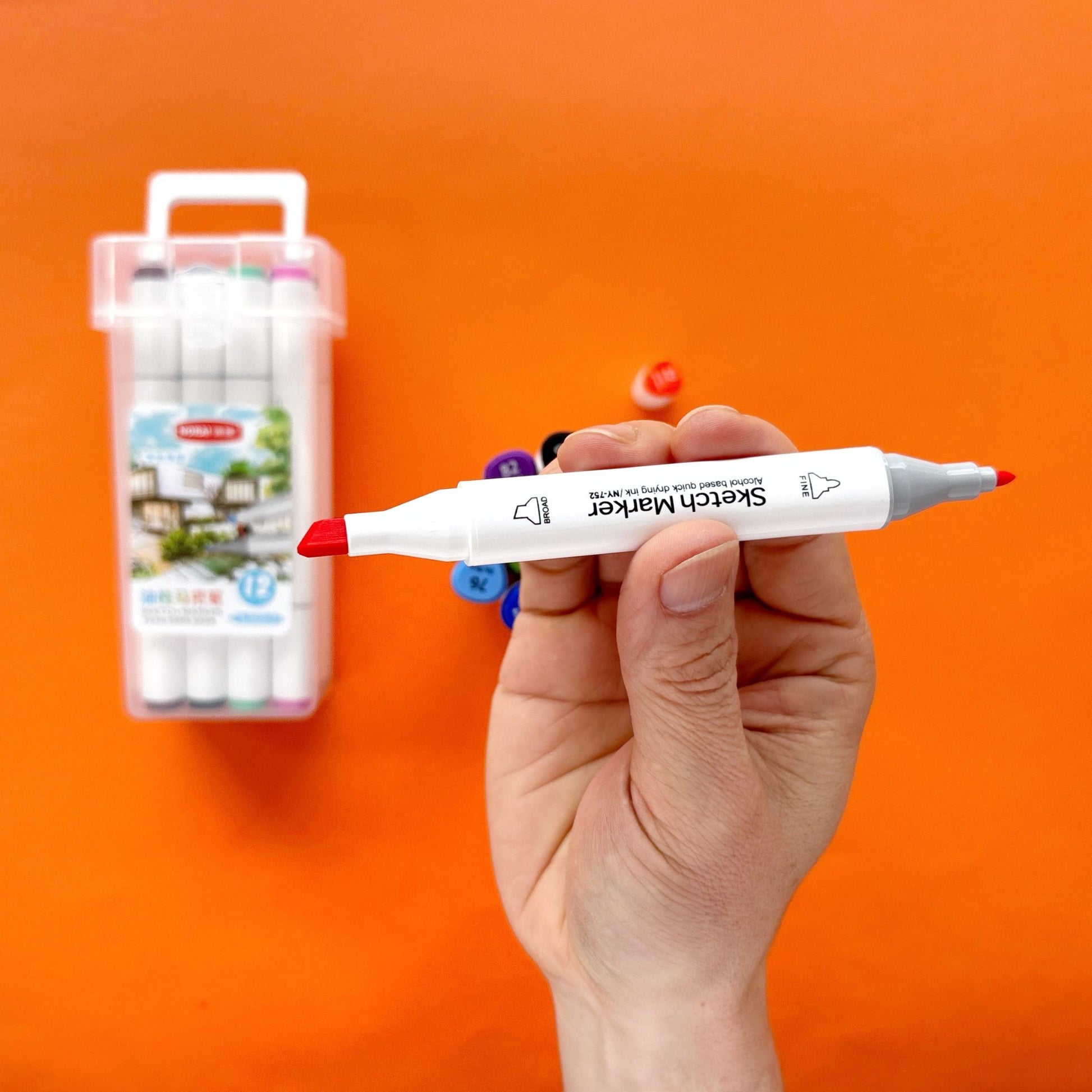 Cada marcador tiene doble punta: una fina para los detalles y otra biselada para rellenar o sombrear con facilidad. Vienen en un estuche práctico ideal para llevar a todas partes o mantener tu espacio creativo siempre ordenado.
