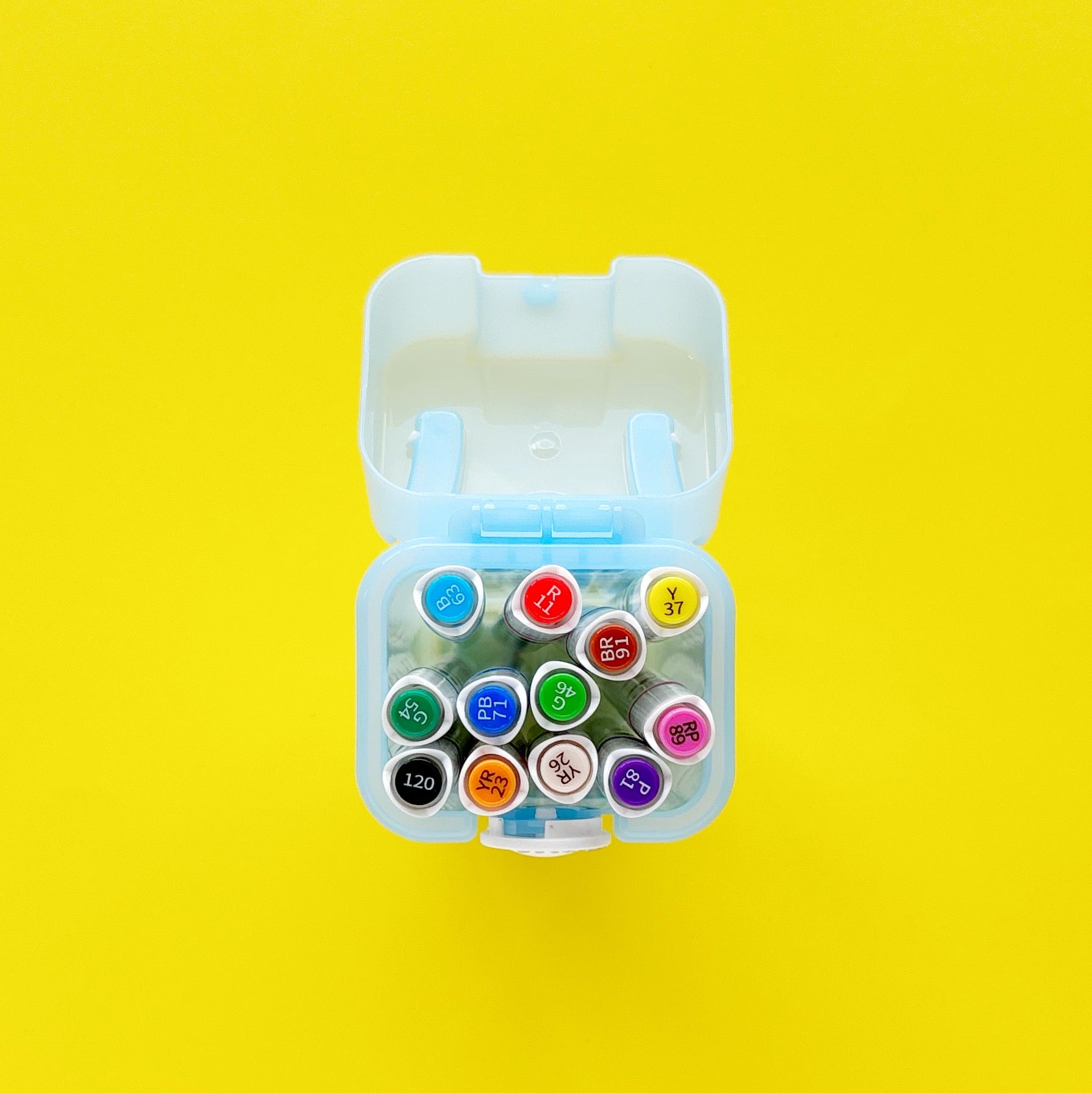 Este estuche incluye 12 marcadores con deliciosos aromas frutales, perfectos para escribir, dibujar o decorar tus apuntes.