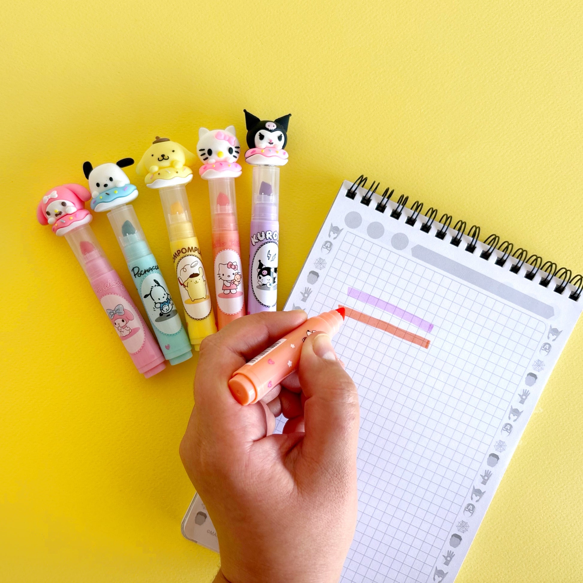 Ilumina tus apuntes, tu agenda y tus proyectos creativos con estos resaltadores pequeños de Sanrio, tan cute que dan ganas de llevarlos a todas partes.