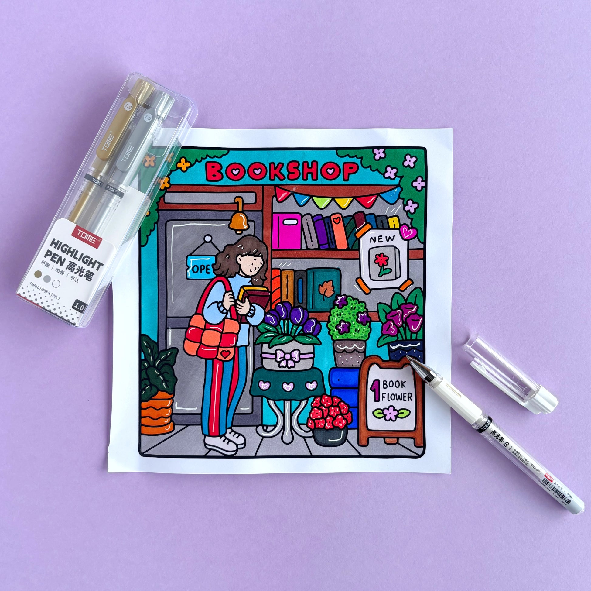 Además, el tono blanco es perfecto para añadir pequeños detalles sobre ilustraciones ya coloreadas, como puntos de luz, acentos y acabados finales que hacen que los dibujos cobren vida. Es ideal para quienes disfrutan colorear y luego intervenir sus páginas con toques delicados y creativos.
