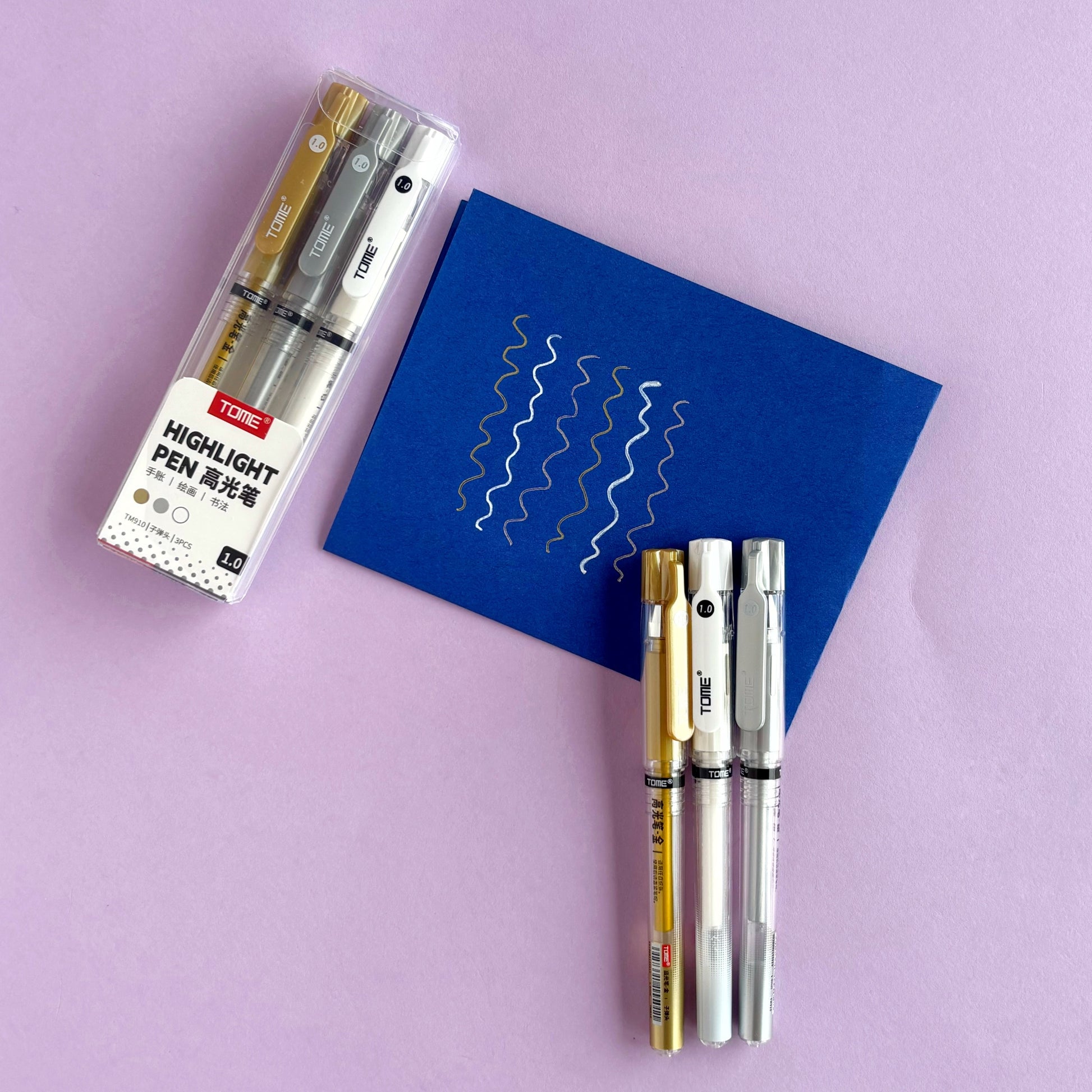 Este set de plumas metalizadas es perfecto para quienes disfrutan escribir, decorar y crear con detalles elegantes y brillantes en papel oscuro o claro.