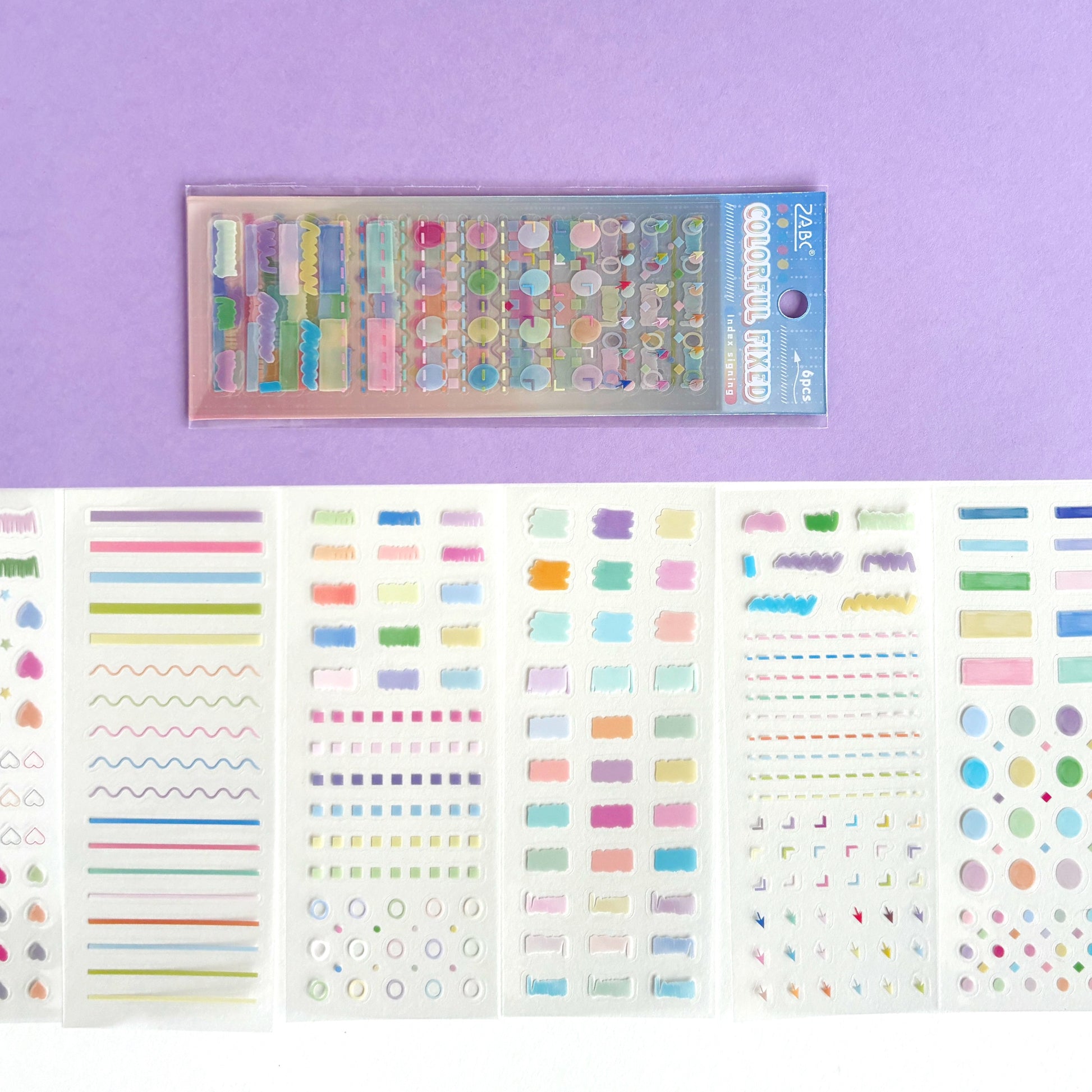 - 6 hojas de mini stickers funcionales